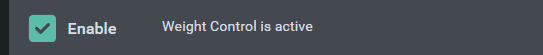 The system is prepared to activate weight control but has not started adjusting yet. The reference data is set, and the system is standing by. - Weight Control is active