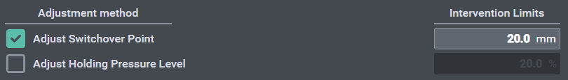 When this option is enabled, the system is allowed to automatically adjust the switchover position during the injection phase.- If the switchover type is position-based, the value will be adjusted in millimeters (mm).